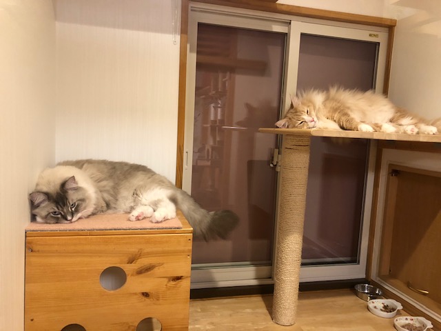 ホテル内の猫ちゃんたちの様子